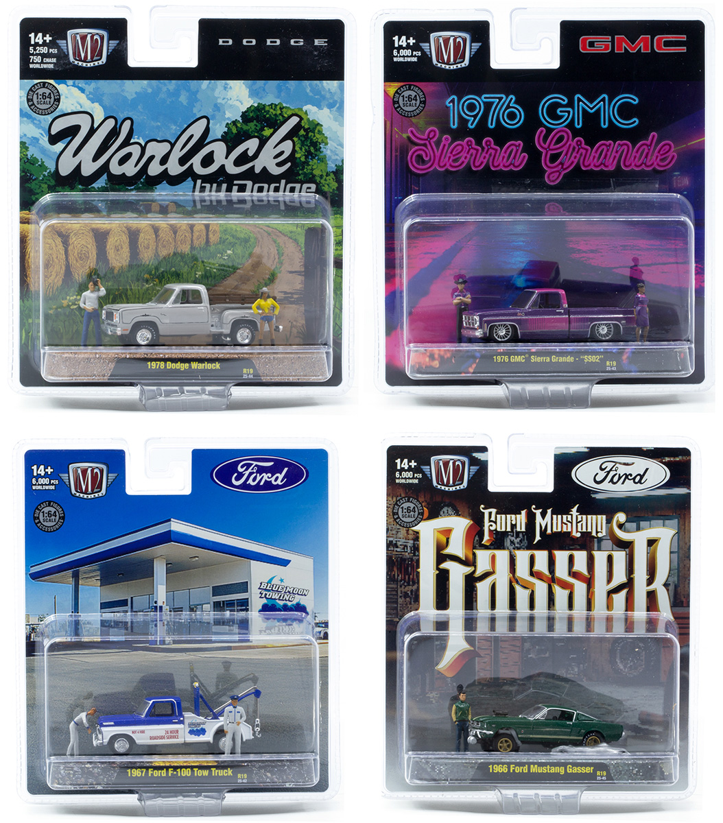 4-Piece Sets. Look for M2Machines' rare Chase Cars inserted into cases at random.