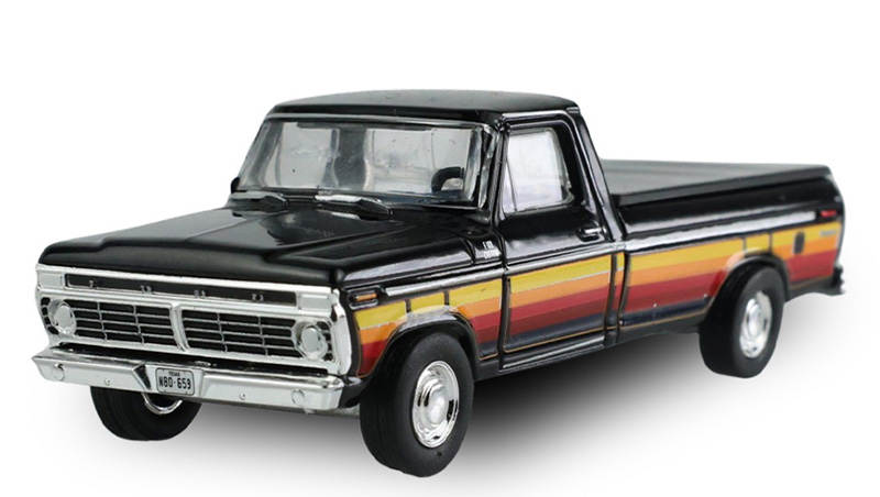 • 1977 Ford F-100 with Bed Cover in Black with Free Wheeling Stripes