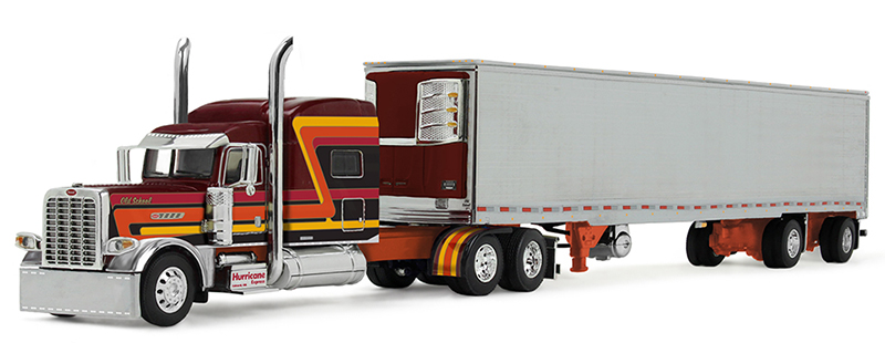 Hurricane Express - Peterbilt Model 389 Pride-N-Class in Maroon with Orange, Yellow, and Red Stripes Hauling 53’ Refrigerated Utility Trailer - Big Rig Series II #4